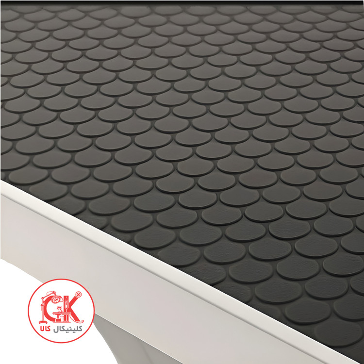 میله نگهدارنده از استیل ۳۰۴ طبی یک میل ساخته شده که علاوه بر استحکام، خاصیت ضدزنگ و بهداشتی بودن را تضمین میکند. رویهی میز از لاستیک مشبک ضدلغزش است که مانع سر خوردن پت میشود و آرامش بیشتری برای حیوان فراهم میکند. همچنین وجود صفحهی پایین بهعنوان لرزشگیر، ثبات میز را در زمان اصلاح افزایش داده است.
